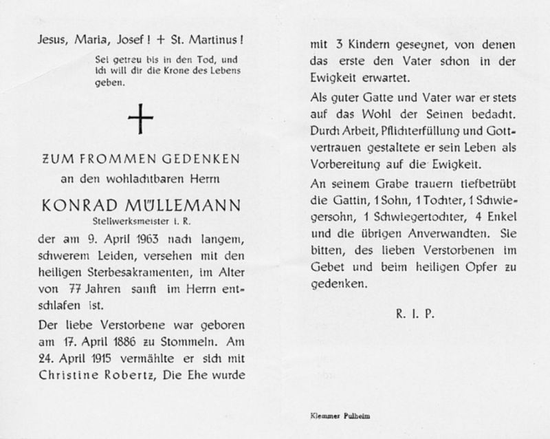 Stellwerksmeister; ∞ 24.04.1915 Christine Robertz, 3 Kinder, davon 1 verstorben |