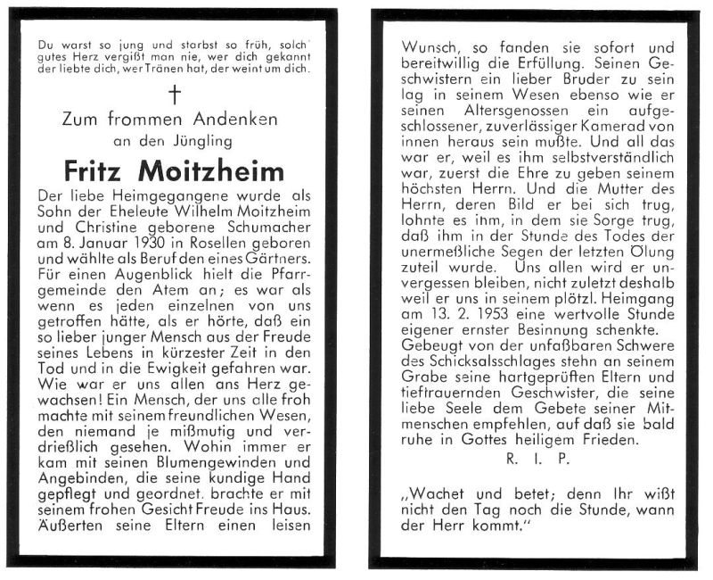 Eltern: Wilhelm Moitzheim u. Christine geb. Schumacher; Gärtner; |