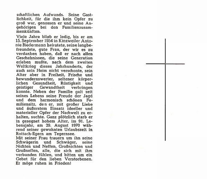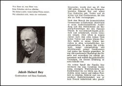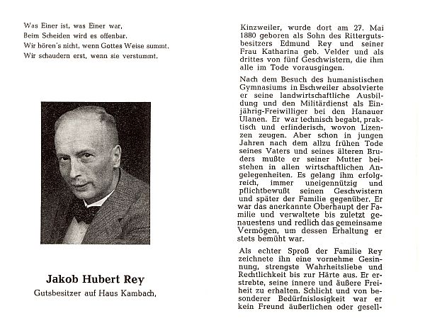 Gutsbesitzer aus Haus Kambach in Kinzweiler; Eltern Edmund Rey und Katharina geb. Velder; ∞ am 15.09.1954 in Kinzweiler mit Antonie Biedermann; |