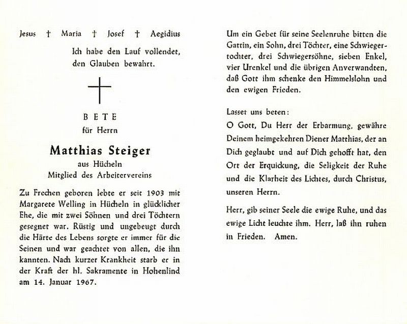 ∞ in 1903 Margarete Welling in Hücheln; 2 Söhne und 3 Töchter; Mitglied des Arbeitervereins; |