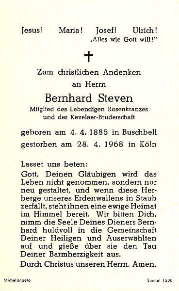 Mitglied des Lebendigen Rosenkranzes und der Kevelaer-Bruderschaft; |