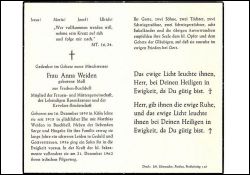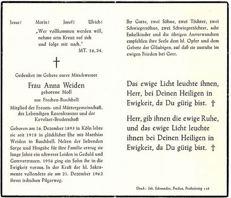 ∞ 1918 mit Matthias Weiden in Buschbell; 1 Sohn 1956 †; |