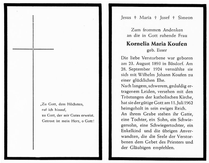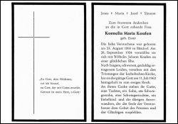 | ∞ 28.9.1924 Wilhelm Johann Koufen; langes Leiden |