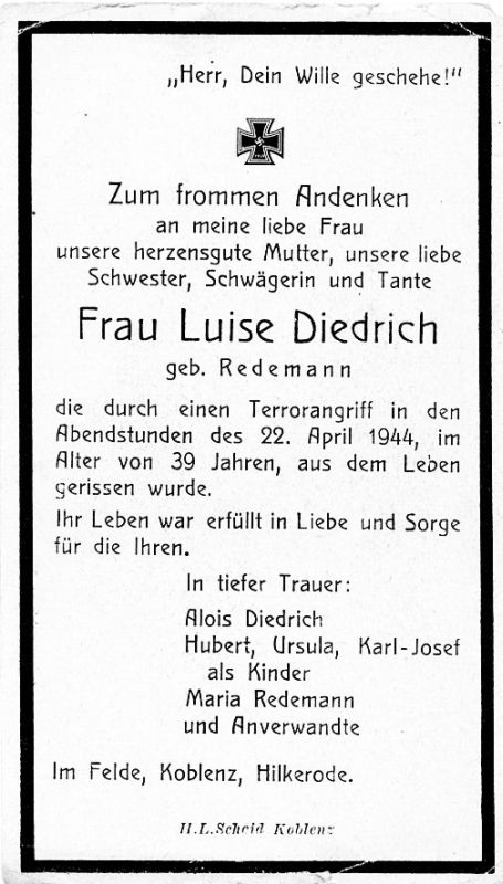 39 J.; Opfer 2. Weltkrieg; Tod bei "Terrorangriff" (auf Koblenz)