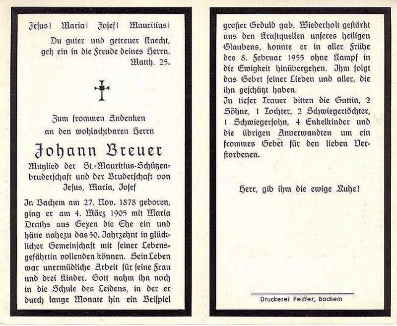 ∞ am 04.03.1905 mit Maria Draths aus Geyen; 3 Kinder; |