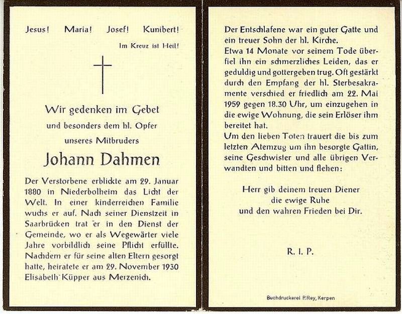 | ∞ am 29.11.1930 mit Elisabeth Küpper aus Merzenich; |