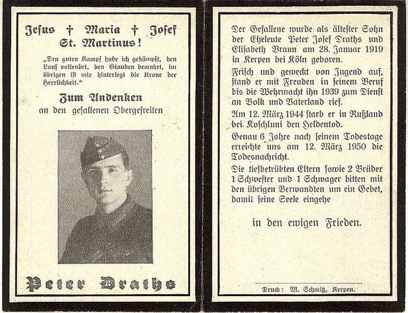 | Gefallener 2. Weltkrieg; ältester Sohn von Peter Josef Draths und Elisabeth Braun; |
