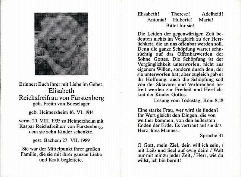 von Fürstenberg, Reichsfrau, geb. Freiin von Boeselager | | Vorname: |