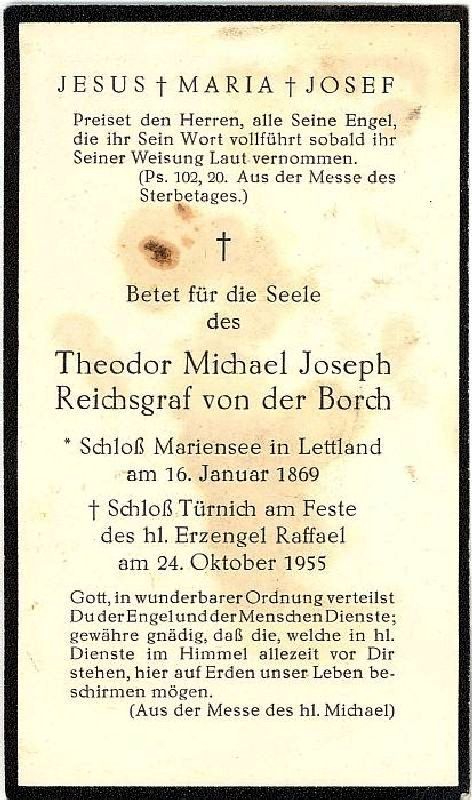 Borch, Reichsgraf von der, Theodor Michael Joseph