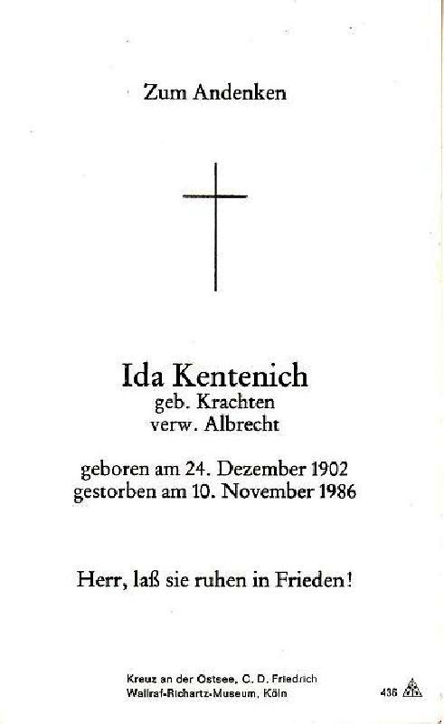 Kentenich verw. Albrecht, geb. Krachten | Vorname: |