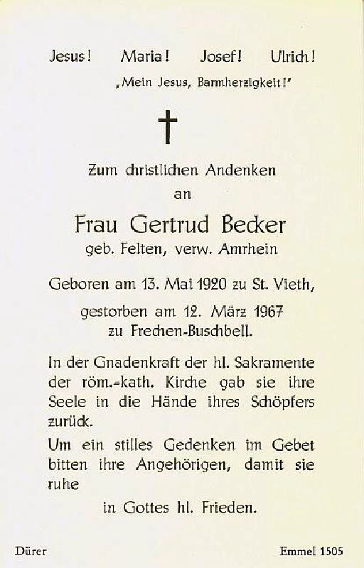Becker, verw. Amrhein, geb. Felten | Vorname: |