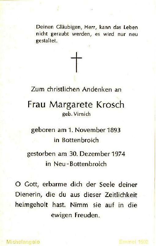 Krosch, geb. Virnich | Vorname: |