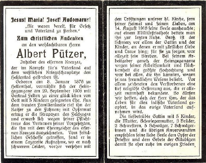 | Gefallener 1. Weltkrieg; ∞ am 29.09.1906 mit Gertrud Felten; 5 Kinder; |