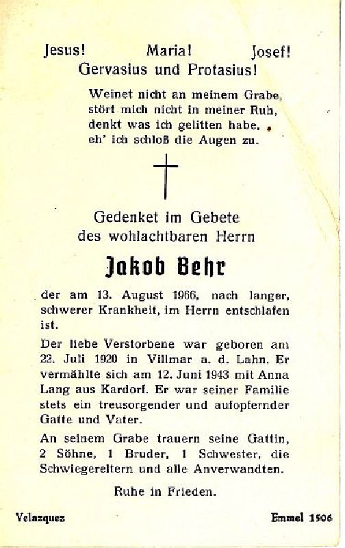 ∞ am 12.06.1943 mit Anna Lang aus Kardorf, 2 Söhne, |