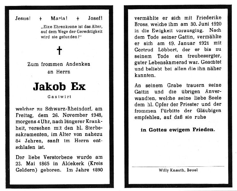 1. ∞ 1890 mitFriederike Bross - 30.06.1920 †; 2. ∞ am 19.01.1921 mit Gertrud Löbbert; Gastwirt; |