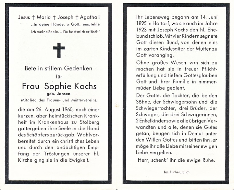 ∞ 1923 mit Joseph Kochs in Hottorf; 4 Kinder, davon 1 im Kindesalter gestorben; |