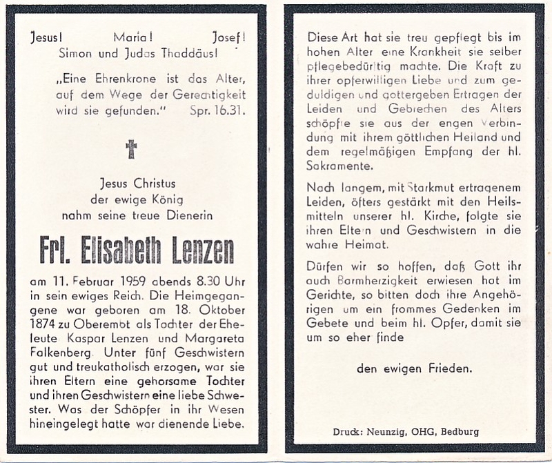 Frl.; Eltern Kaspar Lenzen und Margareta Falkenberg; 5 Geschwister; |