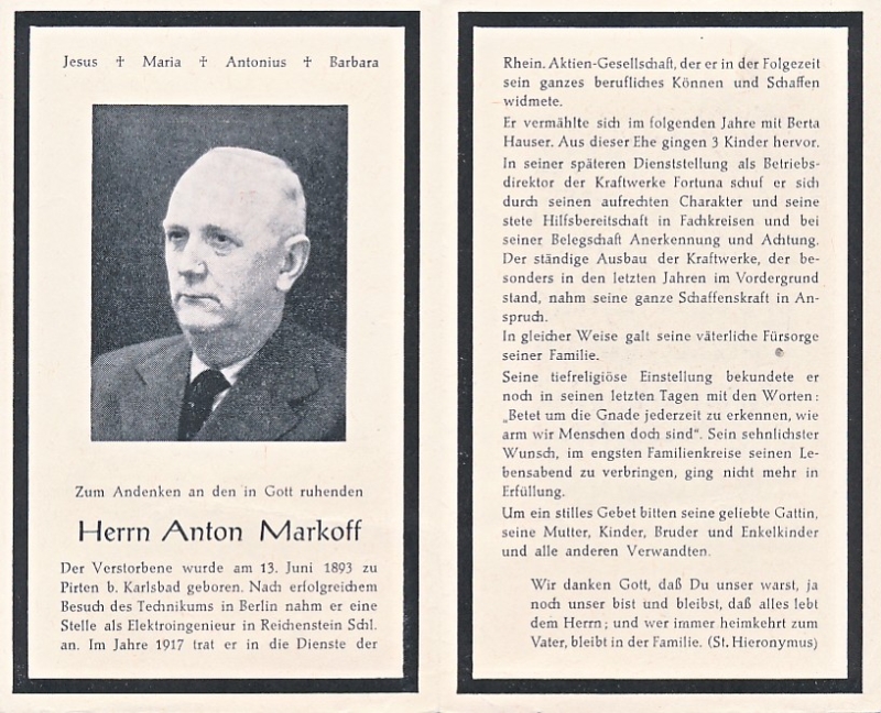 Elektroingenieur; ab 1917 in Diensten der Rhein.Aktien-Gesellschaft; ∞ 1918 mit Berta Hauser, 3 Kinder; Betriebsdirektor der Kraftwerke Fortuna; |