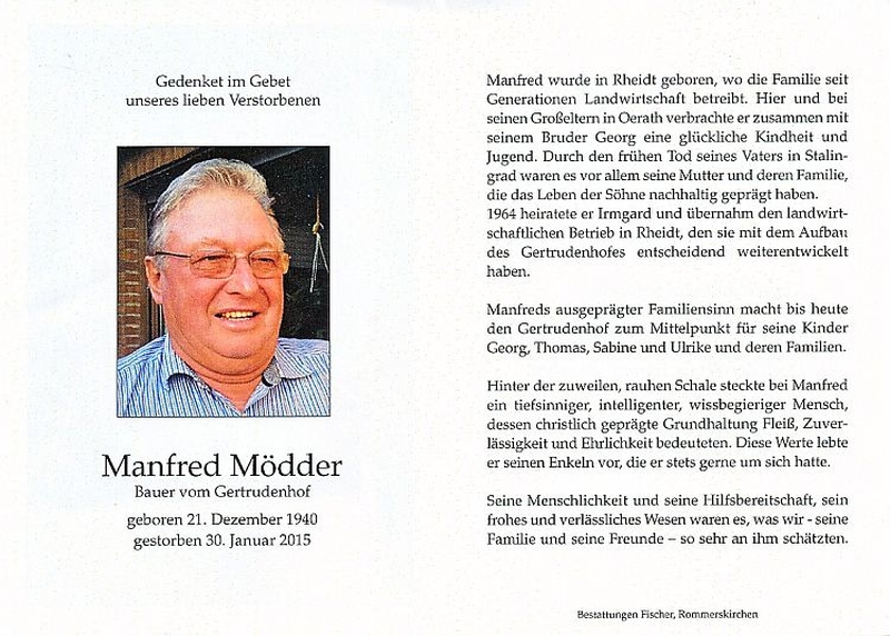 Bauer vom Gertrudenhof; ∞ 1964 mit Frau Irmgard; übernahm den landwirtschaftlichen Betrieb in Rheidt, 4 Kinder; |