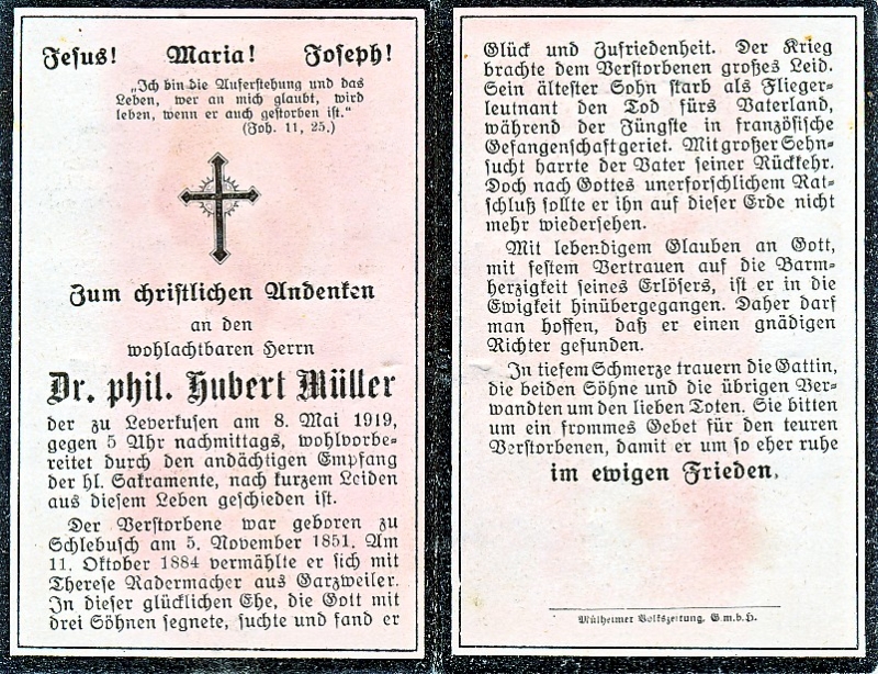 ∞ am 11.10.1884 mit Therese Radermacher aus Garzweiler, 3 Söhne; |