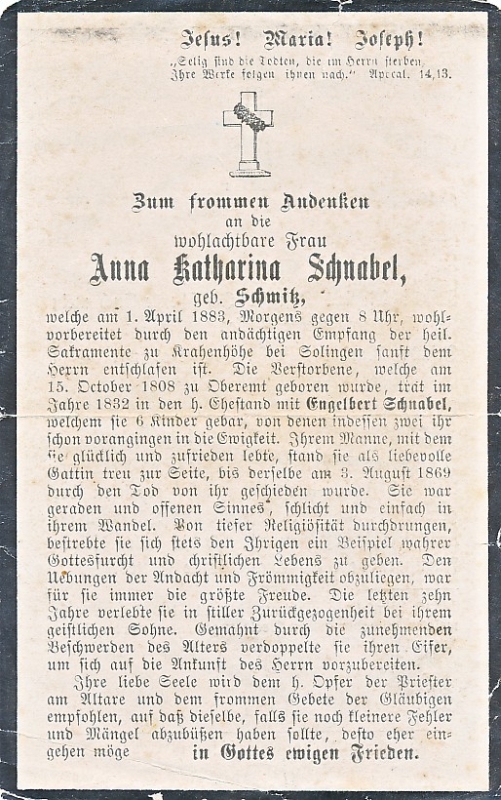 ∞ 1832 mit Engelbert Schnabel 03.08.1869 †, 6 Kinder; |