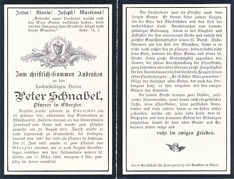 Pfarrer in Oberzier; Priesterweihe am 24.08.1872; am 21.06.1895 zum Pfarrer von Oberzier ernannt; |