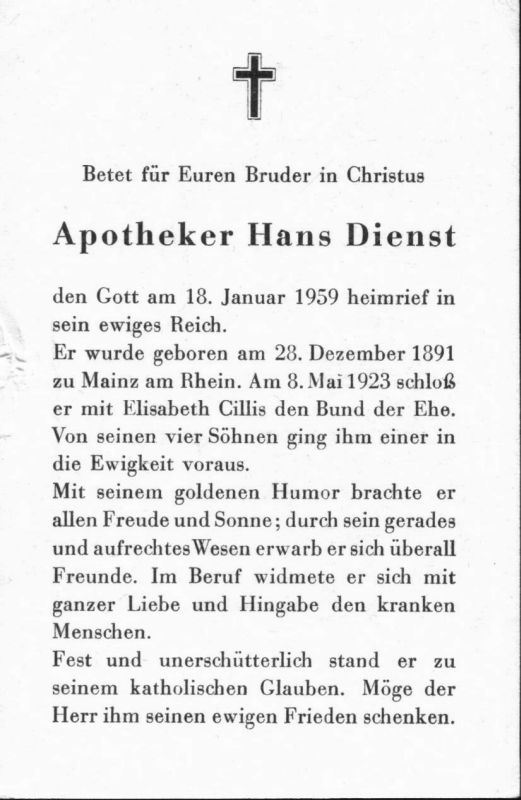 Apotheker; ∞ 8.5.1923 Elisabeth Cillis; 4 Söhne, davon 1 †; |