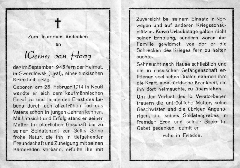 | Opfer 2. Weltkrieg; kaufm. Beruf; früher Tod des Vaters; russische Kriegsgefangenschaft |