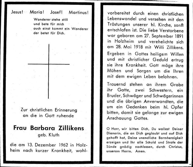 Zillikens, geb. Kluth | | Vorname: |