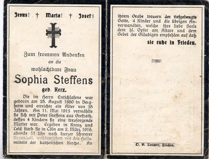 ∞ 11.5.1913 Peter Steffens aus Grefrath; 4 K. |