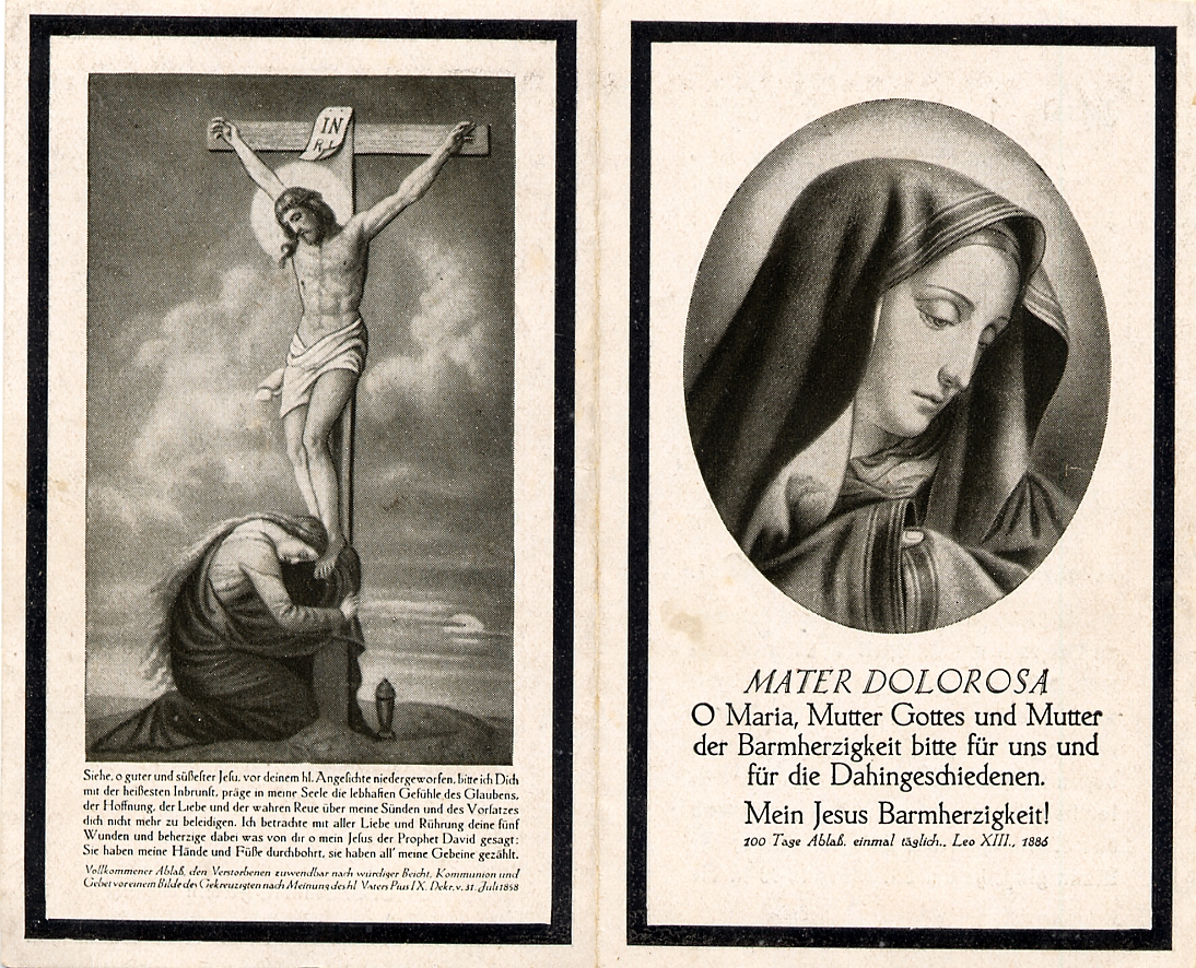∞ 28.3.1897 Ferdinand Mondt aus Trier, † 28.3.1946; 10 K., davon 2 früh †; weiteres K. Opfer des 2. Weltkrieges (Druck in Frechen) |