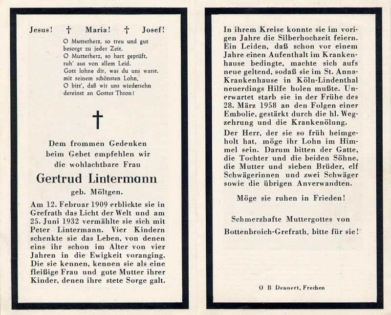 Embolie; ∞ 25.6.1932 Peter Lintermann; 4 K., davon 1 mit 4 J. †; |