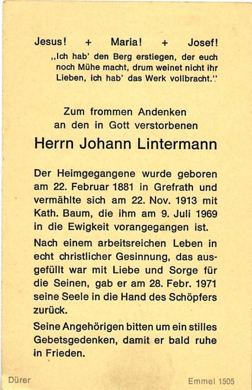 ∞ 22.11.1913 Katharina Baum, † 9.7.1969 |