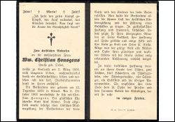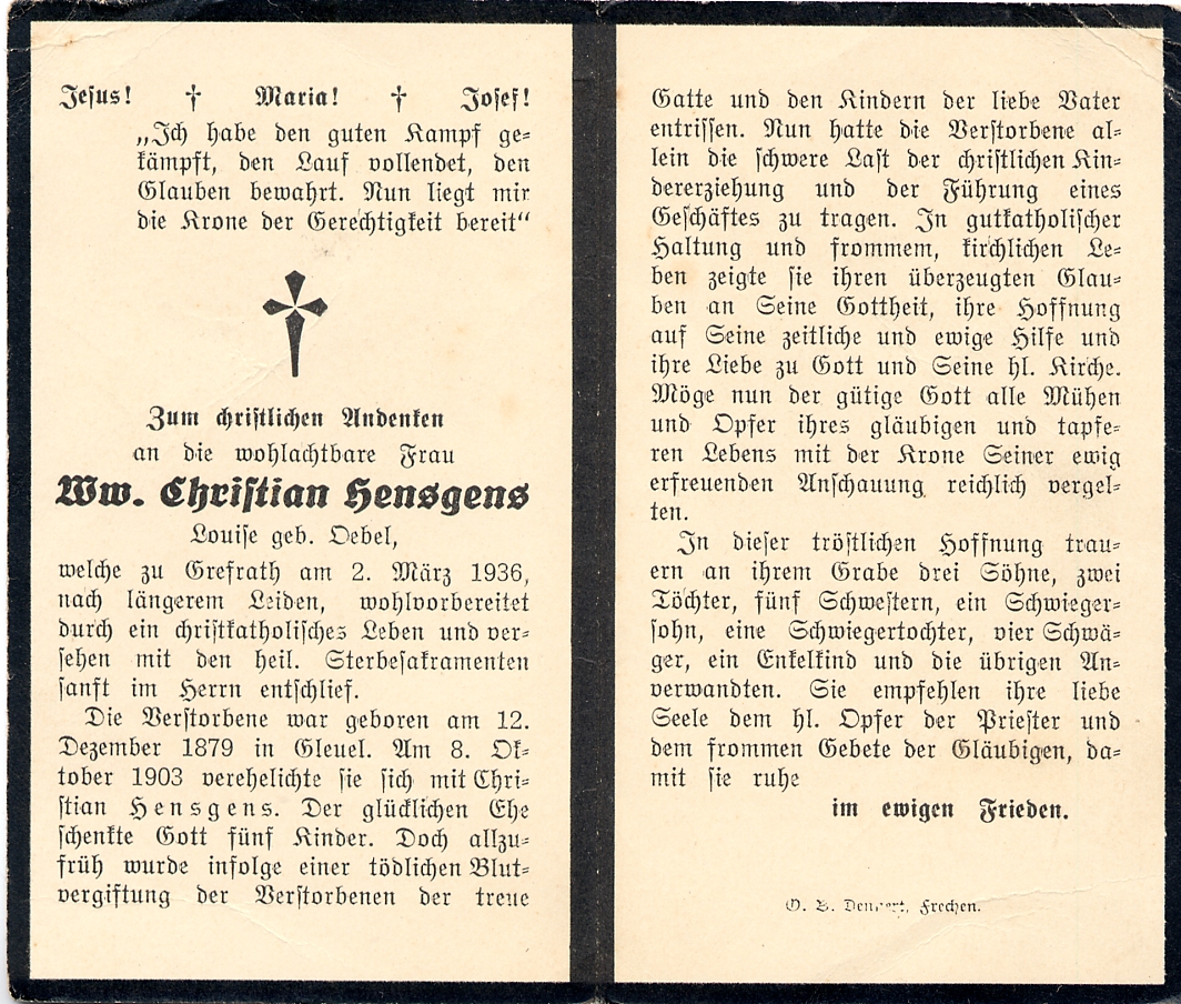∞ 8.10.1903 Christian Hensgens, früh † durch Blutvergiftung; 5 K.; |