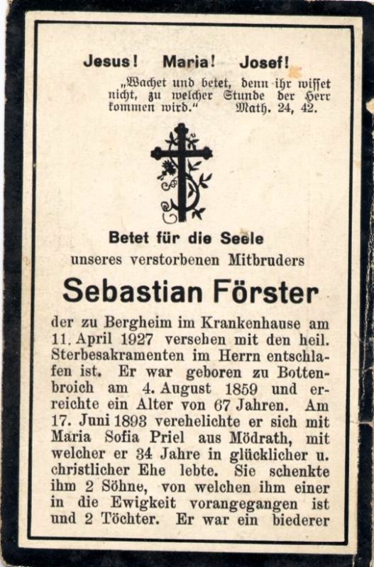 ∞ 17.6.1893 Maria Sofia Priel aus Mödrath; 4 K., davon 1 †; TZ unvollständig; S. 3 u. 4 fehlen |