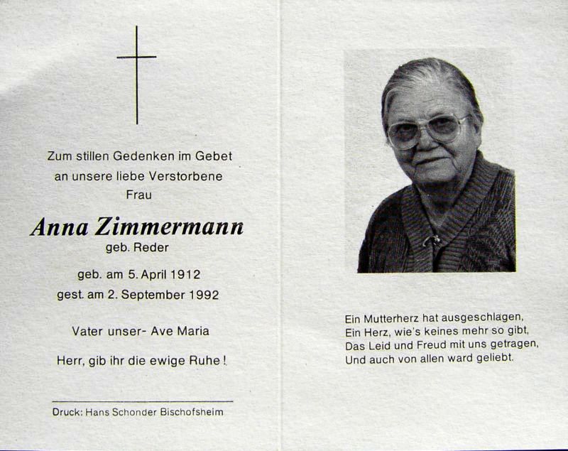 Zimmermann, geb. Reder | Vorname: |