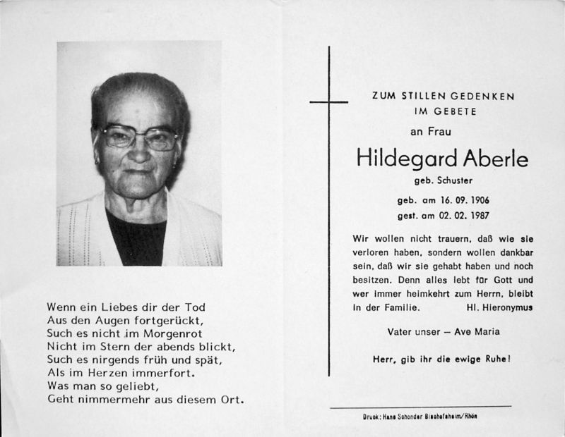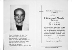 Aberle, geb. Schuster | Vorname: |