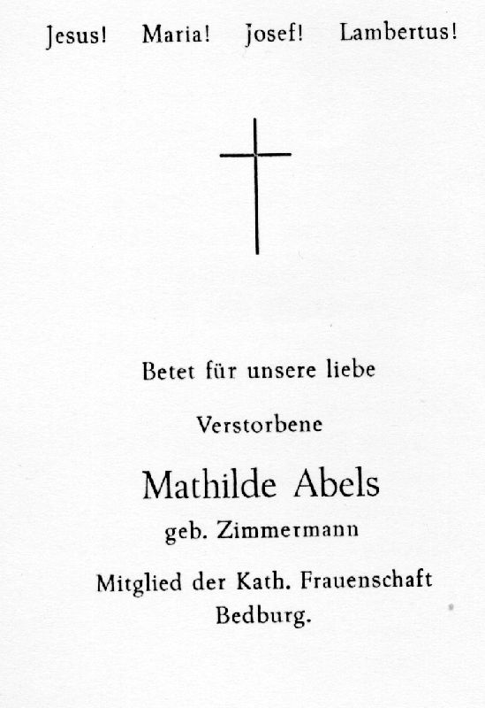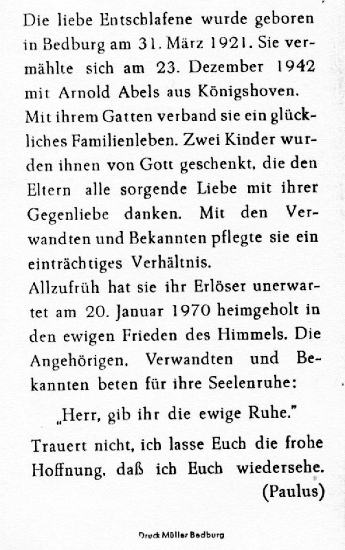 ∞ 23.12.1942 Arnold Abels aus Königshoven; 2 K.; Druck in Bedburg/Erft |