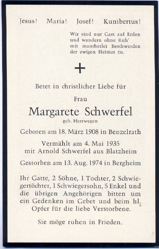∞ 4.5.1935 Arnold Schwerfel aus Blatzheim; 3 überlebende Kinder |
