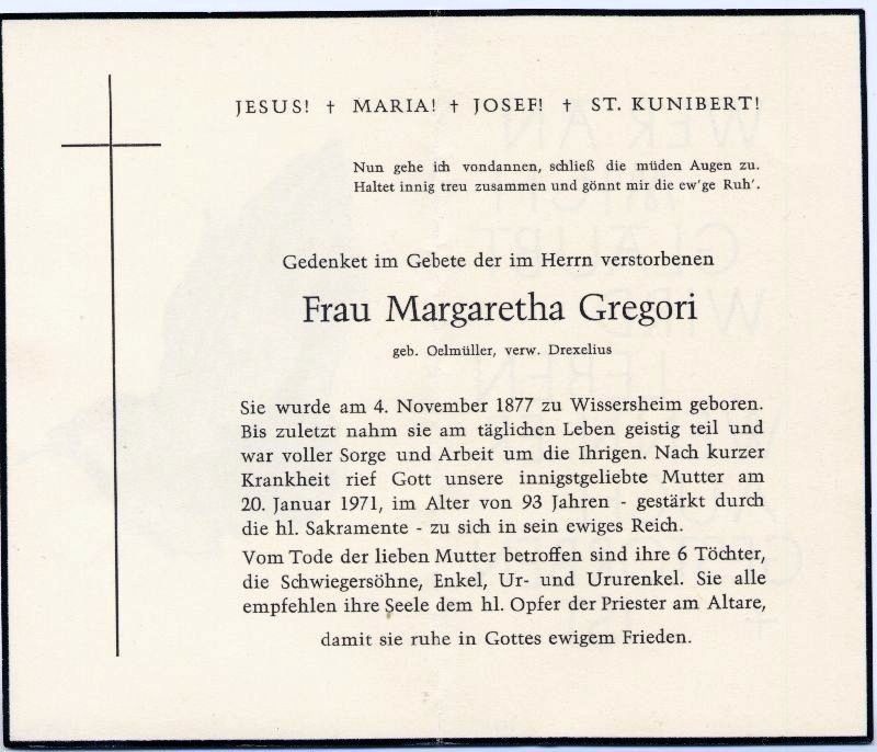 Gregori, geb. Oelmüller, verw. Drexelius | Vorname: |