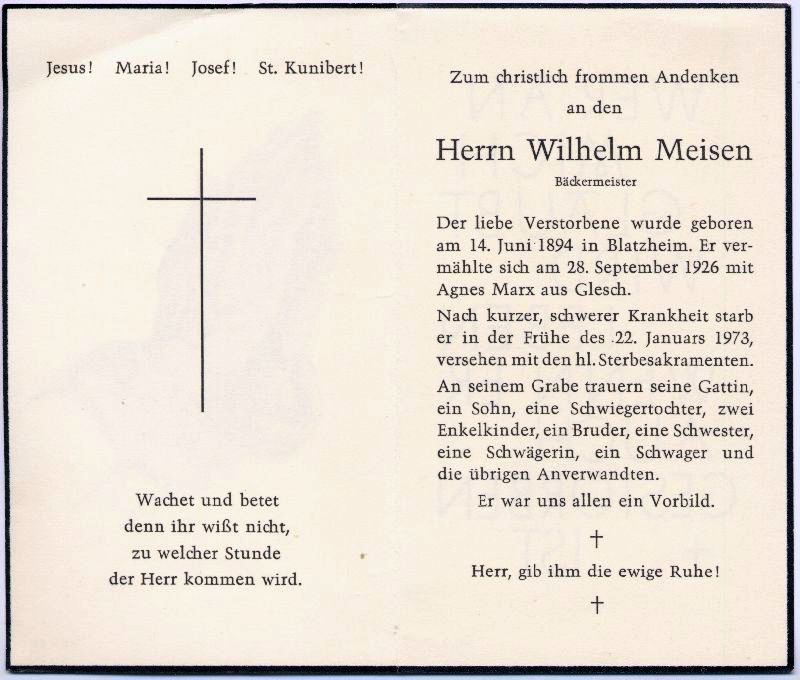 Bäckermeister; ∞ 28.9.1926 Agnes Marx aus Glesch; 1 überlebender Sohn |
