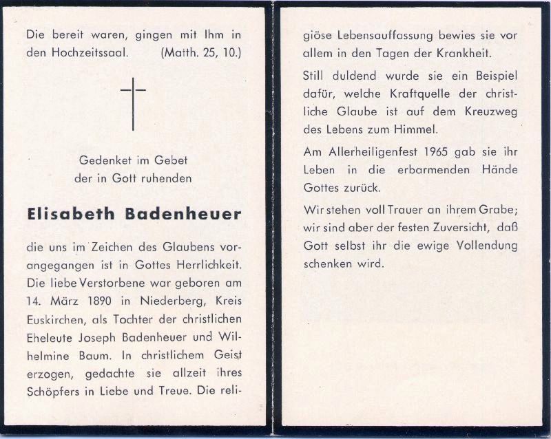 Eltern: Joseph Badenheuer u. Wilhelmine Baum |