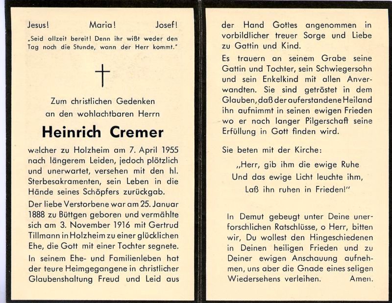 | ∞ 3.11.1916 Gertrud Tillmann in Holzheim; 1 Tochter; |