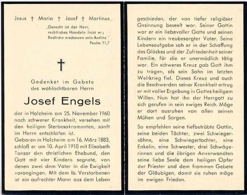 ∞ 10.4.1910 Elisabeth Tonsor; 4 K., davon 2 † (1 Sohn im 2. Weltkrieg gefallen); |