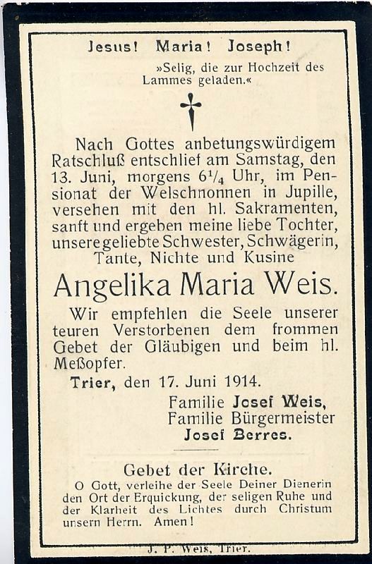 Jupille, Pensionat der Welschnonnen | Sterbedatum: |