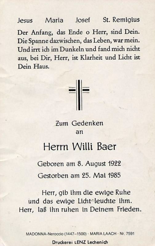 Druck in Lechenich; vermutlich aus Dirmerzheim