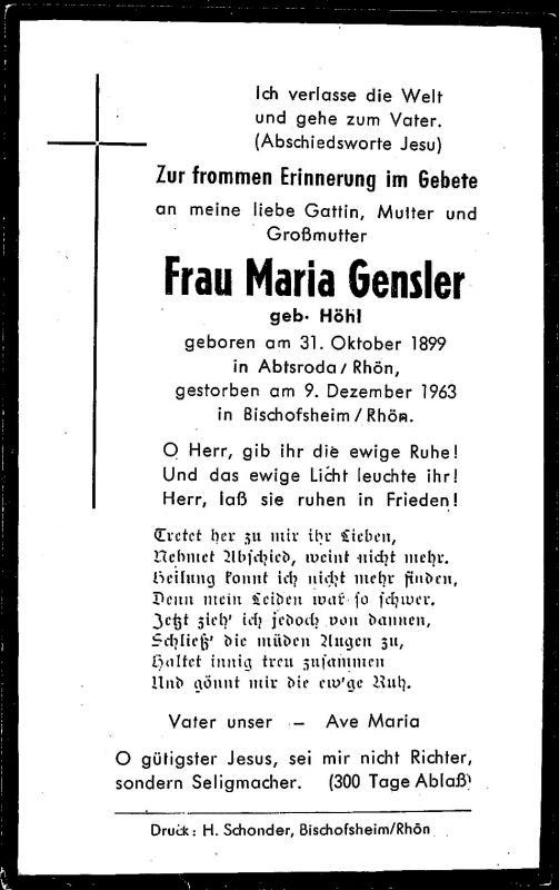 Gensler, geb. Höhl | | Vorname: |
