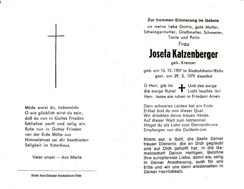Katzenberger, geb. Krenzer | Vorname: |