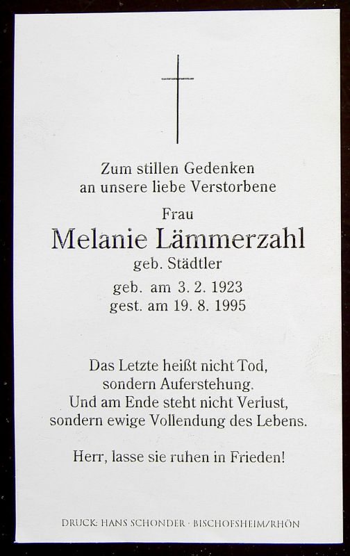 Lämmerzahl, geb. Städtler | | Vorname: |