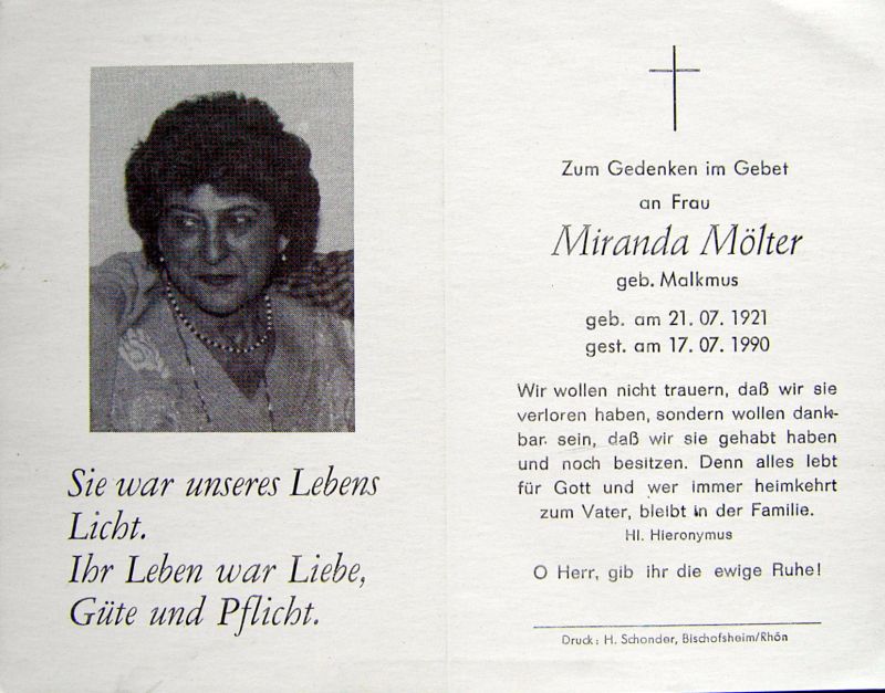 Mölter, geb. Malkmus | Vorname: |